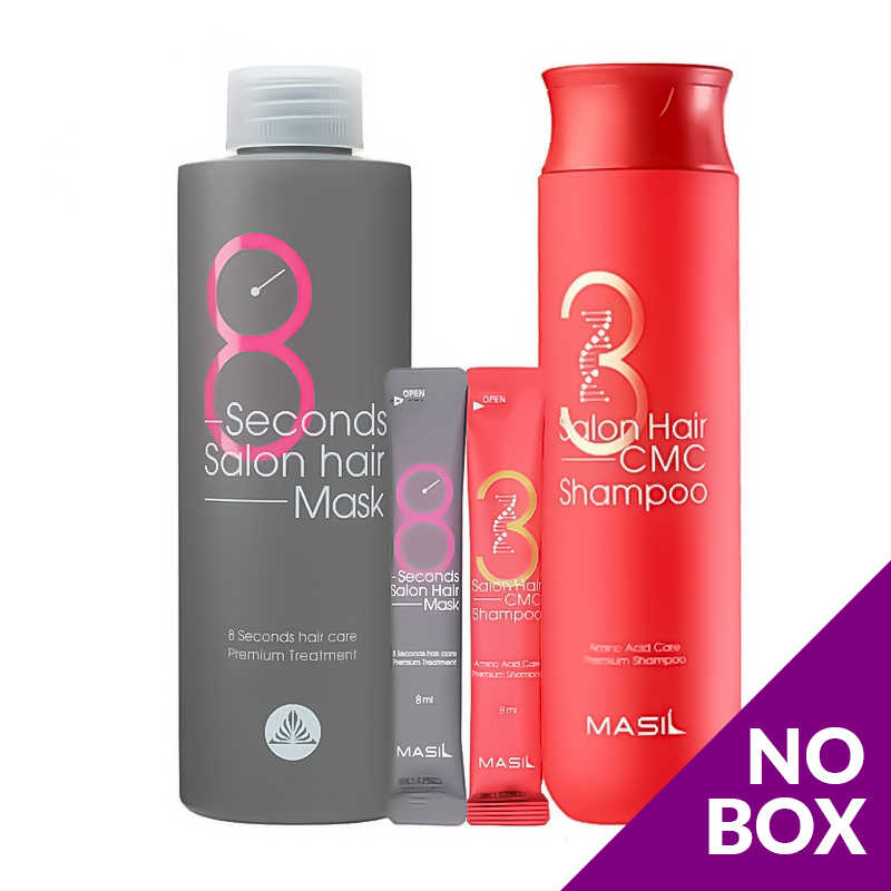 Masil 38 Salon Hair Set Набір для сухого, пошкодженого, жорсткого, ламкого та фарбованого волосся. Склад набору: Masil 3 Salon Hair CMC Shampoo Відновлювальний професійний шампунь з керамідами 300ml - 1шт. + 8ml - 2шт. Masil 8 Seconds Salon Hair Mask Маска для швидкого відновлення волосся 200ml -1шт. і 8ml - 2шт. Відновлювальний професійний шампунь з керамідами Masil 3 Salon Hair CMC Shampoo ідеальний для догляду за сухим, пухнастим і пошкодженим волоссям. Відмінно піниться і без зусиль очищає шкіру голови від надлишків себума, пилу, залишків засобів для укладки. Маска для швидкого відновлення волосся Masil 8 Seconds Salon Hair Mask за лічені секунди перетворює пошкоджене, пухнасте, неслухняне, ламке волосся, діючи на структурному рівні. Висококонцентрована формула засобу проникає глибоко в кутикулу волосини і позитивно впливає на відновлення структури пасом, повертає волоссю пружність і еластичність.